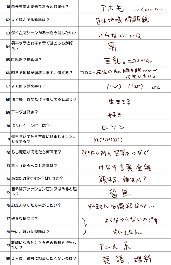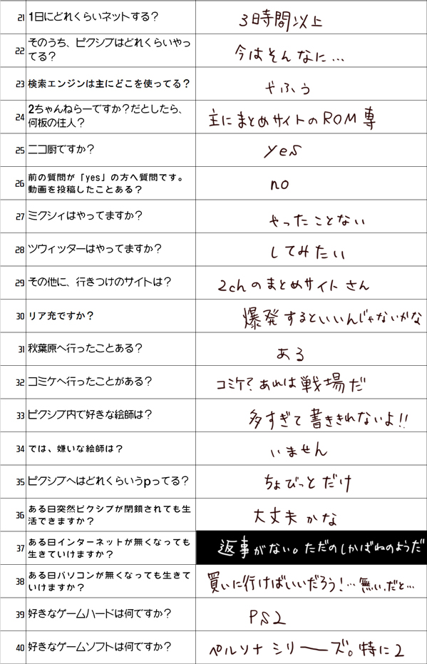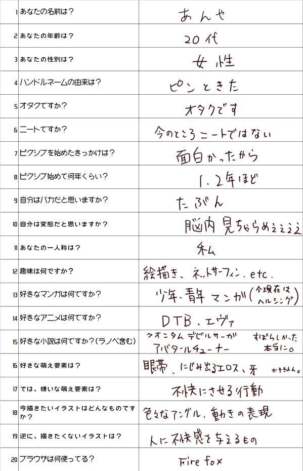 空留さんがしてたpixivユーザーに100の質問、面白そうなので私も答えてみました~。